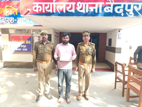 इटावा - वरिष्ठ पुलिस अधीक्षक श्री बृजेश कुमार श्रीवास्तव के निर्देशन में थाना वैदपुरा पुलिस ने बड़ी सफलता हासिल करते हुए एक वांछित अभियुक्त को गिरफ्तार किया है। गिरफ्तार अभियुक्त की पहचान शिव मंगल उर्फ बाँबी पुत्र सुदामालाल निवासी भैंसरई, थाना वैदपुरा, इटावा के रूप में हुई है। थाना पुलिस द्वारा मिली जानकारी के अनुसार,टीम ने विशेष अभियान चलाकर आरोपी को पकड़ा और उसके कब्जे से चोरी का सामान बरामद किया। एक कॉफी कलर की साड़ी चाँदी की एक जोड़ी तोड़ियाँ सुनहरे एवं काले मोतियों की एक माला गिरफ्तारी के बाद संबंधित धाराओं में मुकदमा पंजीकृत कर आगे की कानूनी कार्रवाई की जा रही है। इस सफल कार्रवाई को लेकर वरिष्ठ पुलिस अधीक्षक बृजेश कुमार श्रीवास्तव ने पुलिस टीम की सराहना की और कहा कि जनपद में अपराधियों पर कड़ी निगरानी रखी जा रही है। वहीं थाना प्रभारी नरेंद्र मिश्रा ने बताया कि क्षेत्र में कानून-व्यवस्था बनाए रखने तथा अपराधियों के खिलाफ सख्त कार्रवाई जारी रहेगी।