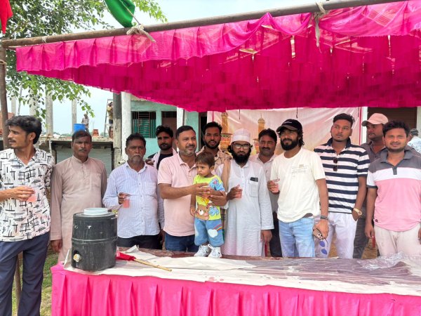 फतेहपुर : मुहर्रम माह की नवीं तारीख को करबला के मैदान में इस्लाम धर्म को बचाने के लिए पैगम्बर मोहम्मद रसूलअल्लाह (स० अ०) के नवाशे और बीबी फातिमा व शेरे खुदा मौला अली के बेटे हज़रत इमाम हुसैन के साथ उनके 71 साथियों ने हक़ और बातिल की लड़ाई लड़ते हुए लईन यजीद की 22000 फौज के सामने अपना सर कटवाकर इस्लाम को जिंदा कर दिया जिससे आज तक इस्लाम दुनिया में कायम है लेकिन हुसैन को कत्ल करने वालों का नामो निशान तक बाकी नहीं है। इन्हीं करबला वालों के याद में हर मुस्लिम इलाके में मुहर्रम को मनाया जाता है। इन्हीं क़रबला वालों की शहादत की याद में अंजुमन कमेटी सुल्तानपुर घोष के युवाओं द्वारा शनिवार को नवीं मुहर्रम के मौके पर इजूरा मोड पर लंगर के रूप में शरबत वितरण किया गया। शरबत को राहगीरों को पिलाया गया।