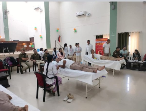 फिरोजाबाद : उत्तर प्रदेश पुलिस फैमिली वेलफेयर एसोसिएशन के तत्वावधान में वरिष्ठ पुलिस अधीक्षक श्री सौरभ दीक्षित के निर्देशन में ब्लड बैंक पुलिस अस्पताल फिरोजाबाद के सौजन्य से रक्तदान शिविर का आयोजन किया गया । रक्तदान शिविर का उद्देश्य सभी के बीच जागरूकता फैलाना व किस प्रकार मात्र रक्तदान से कई लोगों की जान बचायी जा सकती है । रिक्रूट आरक्षियों ने स्वेच्छा से रक्तदान शिविर में बढ़चढ़कर हिस्सा लिया । रक्तदान शिविर में डॉ0 गरिमा सिंह (प्रभारी ब्लड बैंक फिरोजाबाद) एवं डॉ अनस, डॉ नयन, कुo सायनी, मोo मुज्जिमल LT, श्री आदित्य कुमार LT, श्री शशि कांत DEO, श्रीमति हेमलता स्टॉफ नर्स, श्री अवधेश स्टॉफ नर्स, श्री वॉवी स्वक्षक, भारती (Dmlt), निधि (DMLt), सोनी कुमारी(DMLT), स्नेह( DMLT) , अविनाश (DMLT), पुरुषोत्तम उनका स्टॉफ उपस्थित रहा । जनपद फिरोजाबाद पुलिस के अधिकारी एवं कर्मचारीगण तथा रिक्रूट आरक्षियों द्वारा स्वेच्छा से रक्तदान किया गया । रक्तदान करने के पश्चात सभी को प्रशस्ति पत्र वितरित किये गए । इस अवसर पर अपर पुलिस अधीक्षक नगर , क्षेत्राधिकारी लाइन एवं प्रतिसार निरीक्षक व अन्य अधिकारी व कर्मचारीगण मौजूद रहे ।