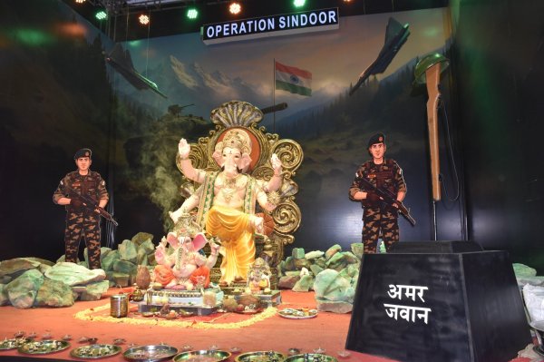 सेक्टर-3-डी में ऑपरेशन सिंदूर की थीम पर बना गणेश पंडाल