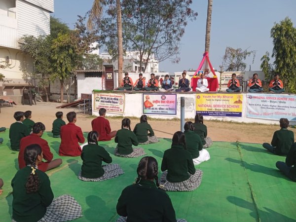 गंजबासौदा - योग चित्त की वृतियों से मुक्त होने का अध्यात्म विज्ञान है। यदि साधक अकेला सूर्य नमस्कार को दिनचर्या का अंग बना ले, तो वह शारीरिक और मानसिक रूप से स्वस्थ रहकर परमात्मा स्वरूप हो जाता है। योग और मंत्र जाप की शक्ति से नरेन्द्र विवेकानंद बन सके। यह बात स्थानीय सैंट एस.आर.एस. पब्लिक हायर सैकेंडरी स्कूल की राष्ट्रीय सेवा योजना की बालक/बालिका इकाई द्वारा आयोजित स्वामी विवेकानंद जयंती के तहत युवा सप्ताह सेवा श्रम कार्यक्रम में योगाचार्य महेन्द्र सिंह रघुवंशी ने संस्था के छात्र-छात्राओं से कही। संस्था डायरेक्टर के.एस. यादव ने कहा कि शिक्षा का उद्देश्य ही बालक का शारीरिक, मानसिक, आत्मिक और चारित्रिक विकास करना है। संस्था द्वारा संत श्रीराम शर्मा आचार्य के आदर्श वाक्य- "व्यक्ति के निर्माण से युग का निर्माण " करने की प्रक्रिया को निभाया जा रहा है। सोमवार इसी क्रम में योगाचार्य रघुवंशी के मार्ग दर्शन में एवं कार्यक्रम अधिकारी कृष्णपाल सिंह चौहान एवं बालिका इकाई प्रभारी रजनी गुप्ता के निर्देशन में स्वयंसेवकों द्वारा सामूहिक सूर्य नमस्कार, आसन और प्राणायाम का अभ्यास किया। सेवा के स्वच्छता अभियान अन्तर्गत स्कूल परिसर में पॉलीथिन उन्मूलन और सफाई अभियान चलाया और बाटिका निर्माण जैसे कार्यक्रम संपन्न कराए गए एवं शिक्षक परिवार ने युवा दिवस के अवसर पर सूर्य नमस्कार का सामूहिक रूप से अभ्यास किया।