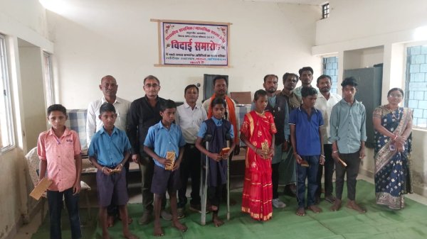 गरियाबंद : शासकीय पूर्व माध्यमिक एवं प्राथमिक शाला ओड में विदाई समारोह के अवसर पर न्योता भोज का आयोजन किया गया।कार्यक्रम के मुख्य अतिथि निरंजन झाकर वरिष्ठ ग्रामीण थे,कार्यक्रम की अध्यक्षता रामसिंह सोरी ग्राम प्रमुख ने की।इस अवसर पर छात्र छात्राओं द्वारा साँस्कृतिक कार्यक्रम की प्रस्तुति दी गई,5वी,8वी के विद्यार्थियों को उपहार देकर भाव भीनी बिदाई दी गई। दूरस्थ पहाड़ी पर बसे इस विद्यालय में हुए आयोजन में ग्रामीणों की काफी सहभागिता रहीं।