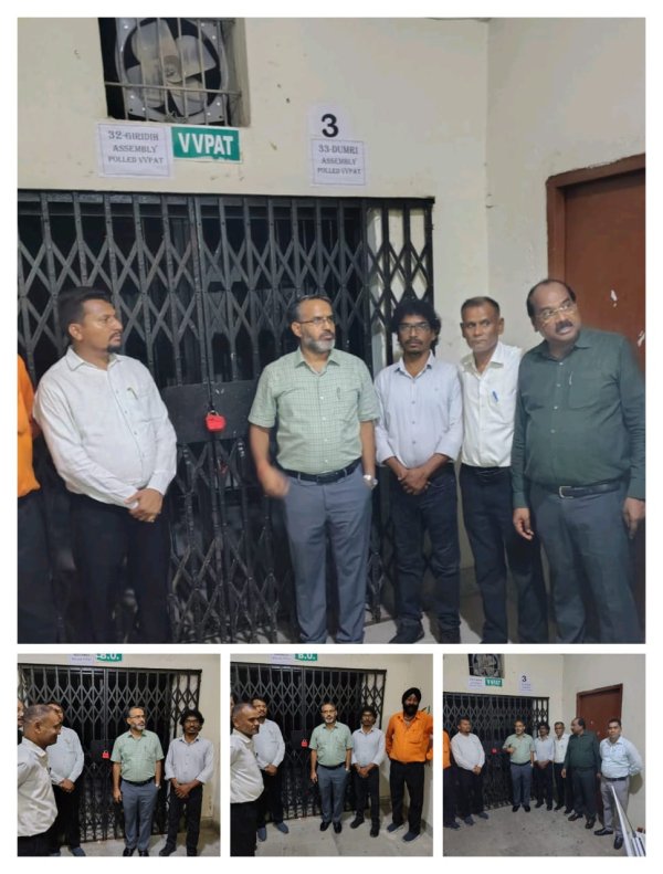 गिरिडीह - जिला निर्वाचन पदाधिकारी सह उपायुक्त रामनिवास यादव के द्वारा प्रखंड कार्यालय परिसर में स्थित ईवीएम वीवीपैट वेयरहाउस का त्रैमासिक निरीक्षण किया गया। उन्होंने ईवीएम वेयर हाउस की विधि व्यवस्था से संबंधित आवश्यक पहलुओं की जांच की। ईवीएम वेयर हाउस की सुरक्षा व्यवस्था की जानकारी ली। उपायुक्त ने सीसीटीवी व अन्य उपकरणों की स्थिति और रखरखाव का जायजा लेने के साथ सीसीटीवी कंट्रोल रूम का भी निरीक्षण किया। इसके अलावा निरीक्षण के दौरान जिला निर्वाचन पदाधिकारी द्वारा परिसर में सुरक्षा व्यवस्था, विद्युत व्यवस्था, बीयू हॉल, सीसीटीवी कंट्रोल रूम, जनरेटर रूम, तैनात सुरक्षा बलों के लॉग बुक, अग्निशमन यंत्र आदि सहित अन्य व्यवस्थाओं तथा कमरों के सीलिंग आदि का जायजा लिया गया। निरीक्षण के क्रम में तैनात सशस्त्र सुरक्षा बलों को अपने कार्य एवं दायित्वों के प्रति सचेत व सक्रिय रहने के निर्देश दिए। मौके पर उप निर्वाचन पदाधिकारी रंथू महतो के अलावा सभी राजनीतिक दलों के प्रतिनिधि व अन्य संबंधित अधिकारी उपस्थित रहे l