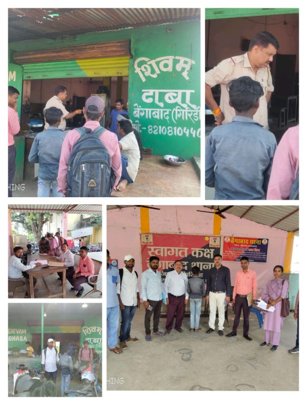 गिरिडीह : बाल मज़दूर रेसक्यू एवं पूनर्वास अभियान के तहत बीते 16 अक्टूबर शुक्रवार को धावा दल द्वारा बेंगाबाद के विभिन्न प्रतिष्ठानों होटलों, ढाबों मिठाई की दुकान, कपड़ो की दुकान आदि का निरीक्षण किया गया जहाँ बालश्रमिक रखे जाने की सूचना प्राप्त हुई थी।