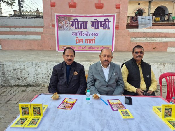 गोण्डा : सनातन धर्म के प्रति समर्पित जनपद की लब्ध प्रतिष्ठ संस्था गीता गोष्ठी के तत्वावधान में गीता जयंती के उपलक्ष्य में रजत जयंती समारोह रविवार 14 दिसम्बर को प्रातः 09 बजे से मालवीय नगर स्थित रामलीला मैदान में आयोजित किया जा रहा है। समारोह की तैयारियों पर शुक्रवार को रामलीला मैदान में पत्रकार वार्ता आयोजित की गई।