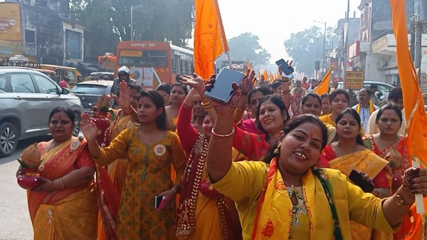 धूमधाम से निकली निशान एवं कलश शोभायात्रा