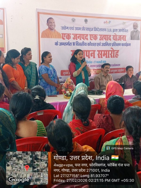 गोंडा : गोण्डा एक जनपद एक उत्पाद (ODOP) प्रशिक्षण के समापन समारोह मे संयुक्त आयुक्त उद्योग श्रीमती सविता भारती जी द्वारा महिलाओ को ट्रैनिंग लेकर रोजगार करने और आगे बढ़ने के लिए तरह तरह की योजना के बारे मे जानकारी दी गई।यह प्रशिक्षण जी एम डी आई सी बाबूराम की देख रेख में दुर्गेश मिश्रा द्वारा रोजवेली रिजॉर्ट एंड मैरिज हॉल में करवाई गई