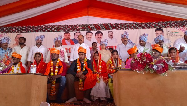 कार्यक्रम के दौरान उन्होंने कहा कि हमारी सरकार में किसी भी गरीब की बेटी के हाथ पीले होने से नहीं बचेंगे वो चाहे किसी जाति व धर्म की हों। सामूहिक विवाह हेतु हमारी सरकार रूपये 60000/- प्रति जोडे के दम्पतियों के खाते में दिया जाता है। शेष उपहार सामग्री दी जाती है जिसमें चांदी की पायल बिछिया, स्टील का डिनर सेट, पांच लीटर का प्रेशर कुकर, कन्या हेतु दो जोड़े कपड़े, वर हेतु एक जोड़ा कपड़ा, दीवाल घड़ी, सौन्दर्य प्रशासन किट आदि गृहस्थी का सम्मिलित होता है।
