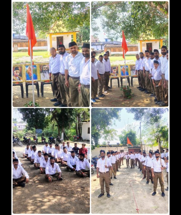 चौपारण : राष्ट्रीय स्वयंसेवक संघ (आरएसएस) के शताब्दी वर्ष अवसर पाण्डेबारा के विश्वकर्मा मंदिर के प्रांगण बिजया दशमी उत्सव और शस्त्र पूजन कर भव्य पथ संचलन निकाला गया। इस अवसर पर सैकड़ों स्वयंसेवक पूर्ण गणवेश में, दंड सहित अनुशासित पंक्तियों में मार्च करते हुए पाण्डेबारा के देवी मंदिर और के विभिन्न मार्गों से गुजरे। कार्यक्रम का शुभारंभ सुबह 12:00बजे विश्वकर्मा मंदिर प्रांगण में हुआ। ठीक 12 बजे पथ संचलन प्रारंभ हुआ। स्वयंसेवकों ने राष्ट्र निर्माण और समाज संगठन का संदेश देते हुए कदम से कदम मिलाकर नगर भ्रमण किया। पथ संचलन के दौरान अनुशासन और एकता का अद्भुत दृश्य देखने को मिला। इस संघ शताब्दी वर्ष के उपलक्ष में चौपारण के स्वयंसेवको ने जातीय परंपरा से ऊपर उठकर अपने सम्राट समाज का दृश्य प्रस्तुत करते हुए बरही प्रखंड मैदान में संघ के गणवेश में एकत्रीकरण, ध्वजारोहण, ध्वज प्रणाम, प्रार्थना के बाद शस्त्र पूजन का कर पथ संचलन का आयोजन किया। जो विश्वकर्मा मंदिर से निकलकर पांडेबारा चौक होते हुए , पांडेबारा दुर्गा मंदिर होते हुए पुनः विश्वकर्मा मंदिर में अनुशासन पूर्ण पद संचलन का आयोजन हुआ जिसमें स्वयंसेवकों ने पूर्ण रूप गणेश में अनुशासित रहकर इस पथ संचलन में अपनी भूमिका निभाई सैकड़ो स्वयंसेवक उपस्थित रहे चौपारण खंड के खंड कार्यवाह और बजरंग दल हजारीबाग जिला मिलन प्रमुख ने बताया कि राष्ट्रीय स्वयंसेवक संघ बीते 100 वर्षों से समाज को संगठित करने और राष्ट्र निर्माण के कार्य में निरंतर सक्रिय है। शताब्दी वर्ष को विशेष उत्साह के साथ मनाया जा रहा है। उन्होंने कहा कि पथ संचलन संघ के शताब्दी वर्ष का प्रतीकात्मक कार्यक्रम है, जो संगठन की एकता और अनुशासन को दर्शाता है।