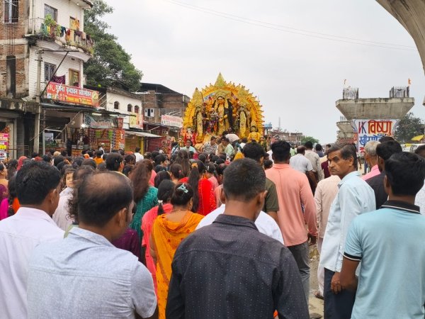 चौपारण में धूमधाम और नम आँखों के बीच माँ दुर्गा को दी गई विदाई, विसर्जन यात्रा में उमड़ा श्रद्धालुओं का सैलाब
