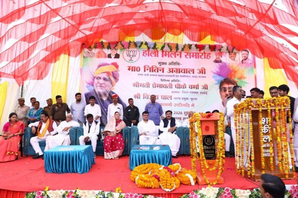 हरदोई : आज विकास खंड परिसर सुरसा हरदोई मे राज्य मंत्री (स्वतंत्र प्रभार) नितिन अग्रवाल व् अध्यक्ष जिला पंचायत हरदोई प्रेमावती की उपस्थिति मे परस्पर प्रेम व् भाईचारे के भाव से होली मिलन समारोह का आयोजन किया गया। इस अवसर कार्यक्रम आयोजक धनञ्जय मिश्रा व् खण्ड विकास अधिकारी कविता अवस्थी ने मंचासीन अतिथियों का पुष्पगुच्छ व् स्मृति चिन्ह भेंट कर स्वागत अभिनन्दन किया। समारोह मे उपस्थित क्षेत्रवासियों को रंगों के पावन पर्व होली की शुभकामनाएँ देते हुए मुख्य अतिथि राज्य मंत्री नितिन अग्रवाल ने कहा कि होली का पर्व आपसी प्रेम, सौहार्द और भाईचारे का प्रतीक है। यह त्योहार समाज में व्याप्त भेदभाव को मिटाकर सभी को एक सूत्र में जोड़ने का संदेश देता है। विशिष्ट अतिथि अध्यक्ष प्रेमावती ने अपने निर्वाचन क्षेत्रवासियों का आभार व्यक्त करते हुए होली के पावन पर्व पर परस्पर प्रेम, सद्भाव और सामाजिक एकता को सुदृढ़ करने का संदेश दिया।
