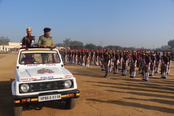 पुलिस अधीक्षक हाथरस चिरंजीव नाथ सिन्हा द्वारा आगामी 26 जनवरी गणतंत्र दिवस परेड रिहर्सल का निरीक्षण किया