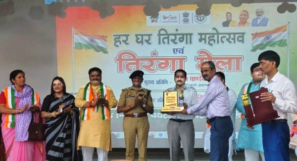 कार्यक्रम के दौरान मा0 जिलाध्यक्ष शरद माहेश्वरी, मा0 जिलाध्यक्ष श्याम सिंह एवं मा0 नगर पालिका अध्यक्ष श्वेता चौधरी ने कार्यक्रम के दौरान हर घर तिरंगा अभियान अतंर्गत आयोजित भव्य कार्यक्रम की प्रशंसा की और जिला प्रशासन को बधाई दी। उन्होंने कहा कि यहां पर विभिन्न विभागों द्वारा जो स्टॉल लगाये गये हैं, उनके माध्यम से संचालित योजनाओं को धरातल पहुँचाने एवं पंक्ति के अंतिम छोर पर खड़े व्यक्ति तक पहुंचाने का कार्य किया जा रहा है। उन्होंने उपस्थित सभी लोगों से आवाहन किया कि सभी लोग अपने-अपने घरों पर तिरंगा अवश्य फहराऐं। उन्होंने तिरंगे झण्डे में रंगों के अलावा बने चक्र के महत्व के बारे में जानकारी देते हुए कहा कि तिरंगे के तीनों रंगों का महत्व हमारे राष्ट्रीय ध्वज में बहुत गहरा और प्रतीकात्मक है। भारत का तिरंगा तीन समान क्षैतिज पट्टियों से बना है ऊपर से नीचे तक के क्रम में केसरिया, सफ़ेद और हरा तथा बीच में अशोक चक्र है। केसरिया (ऊपरी रंग) साहस, बलिदान और त्याग का प्रतीक है। यह रंग हमें याद दिलाता है कि राष्ट्रहित के लिए निस्वार्थ भाव से काम करना और अपने स्वार्थों से ऊपर उठना चाहिए। सफ़ेद (मध्य रंग) शांति, सत्य और पवित्रता का प्रतीक है। यह रंग दर्शाता है कि देश को न्याय, समानता और अहिंसा के मार्ग पर आगे बढ़ना चाहिए। हरा (निचला रंग) समृद्धि, कृषि और जीवन का प्रतीक है। यह रंग भारत की हरियाली, भूमि की उपजाऊ क्षमता और विकास का संकेत देता है तथा अशोक चक्र (बीच का नीला चक्र) यह 24 तीलियों वाला धर्मचक्र है, जो सत्य, धर्म और सतत प्रगति का प्रतीक है। यह संदेश देता है कि जीवन में ठहराव नहीं, बल्कि निरंतर गति और प्रगति आवश्यक है।