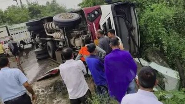 यह हादसा उस वक्त हुआ जब क्षेत्र में भारी बारिश हो रही थी, जिससे सड़कों पर फिसलन बढ़ गई थी। बस के चालक के अनुसार, अचानक बस का स्टीयरिंग लॉक हो गया, जिससे वह वाहन पर नियंत्रण नहीं रख सका और बस सड़क किनारे पलट गई।