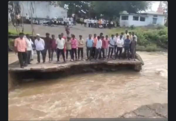 हिंगोली : वसमत तालुका के चोंडी भैरोबा गाँव को जोड़ने वाला पुल मंगलवार को भारी बारिश के कारण बह गया। इससे एक तरफ छात्र और दूसरी तरफ स्कूल जैसी स्थिति पैदा हो गई है। वासमत तालुका का चोंडी भैरोबा लगभग तीन हज़ार की आबादी वाला एक गाँव है। गाँव के बीचों-बीच एक नाले पर एक पुल है और ग्रामीण आवागमन के लिए इसी पुल का इस्तेमाल करते हैं। आधे गाँव के ग्रामीणों को गाँव से बाहर जाने के लिए इसी पुल का इस्तेमाल करना पड़ता है। इस बीच, सोमवार, 22 तारीख को इस इलाके में भारी बारिश हुई। इस बारिश के कारण नदियाँ और नहरें उफान पर आ गईं। चोंडी भैरोबा गाँव में पुल से पानी बह रहा था। आधी रात के आसपास पानी का वेग बढ़ गया और पुल भी बह गया। पुल के नीचे भराई बह जाने से गाँव दो हिस्सों में बँट गया है।