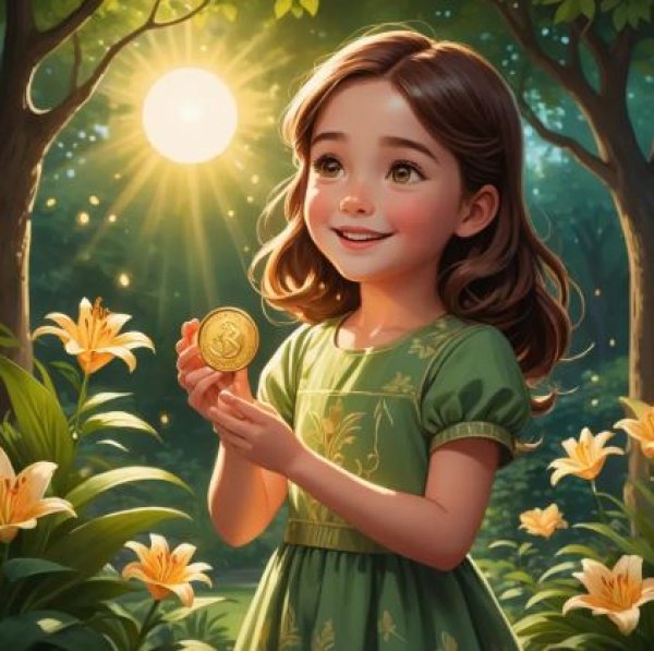 गाँव में राधा नाम की एक लड़की रहती थी। वह बहुत ईमानदार थी। एक दिन राधा रास्ते में चलते हुए मिट्टी के नीचे दबा हुआ एक सोने का सिक्का पाती है।