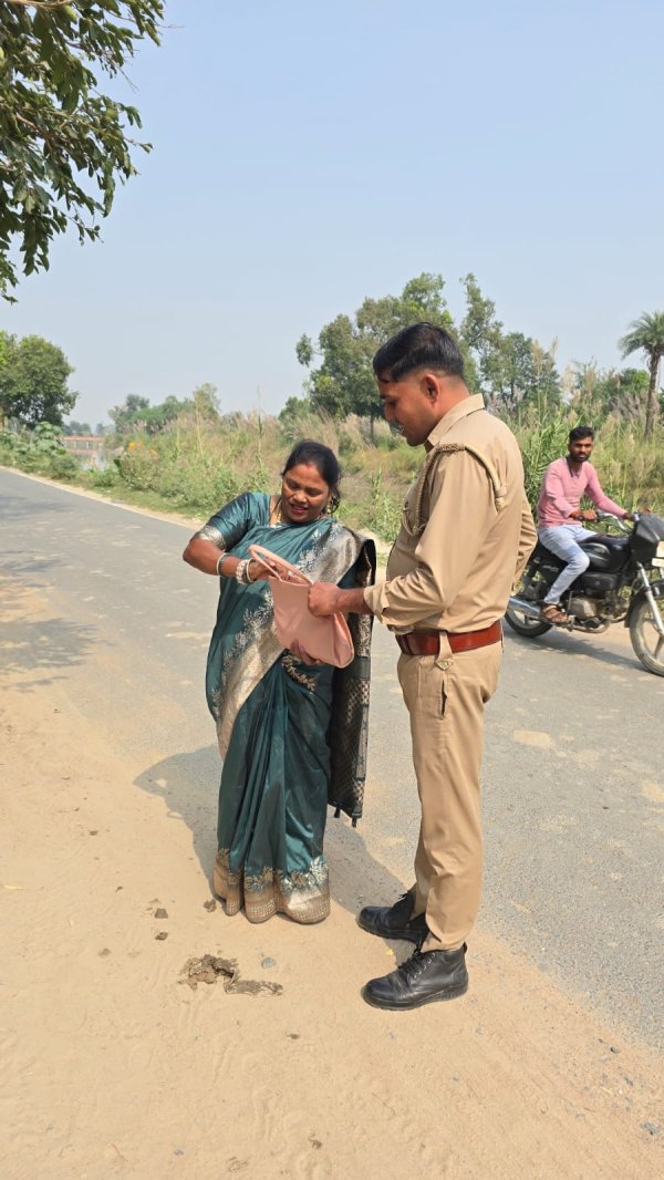इटावा : ईमानदारी अगर इंसान का गहना है, तो थाना बलरई पुलिस ने आज उस गहने की चमक पूरे जिले को दिखा दी। नियमित गश्त पर निकले का० रवि देव एवं का० अजय कुमार को बलरई नहर पुल के पास सड़क किनारे एक लेडीज़ पर्स मिला।पहली ही नजर में लगा कि यह किसी की कीमती वस्तु हो सकती है। जब पर्स खोला गया, तो उसमें से मिलीं सोने की ज्वेलरी, दो मोबाइल फोन, ₹3000 नकद, और आवश्यक दस्तावेज — कुल कीमत लगभग ₹5 लाख रुपये! सुरागों से मिली जानकारी से पुलिस ने बिना एक पल गंवाए पर्स में मिले दस्तावेजों और मोबाइल नंबरों की मदद से संपर्क साधा और पर्स की पहचान श्रीमती रामदेवी पत्नी श्रीकृष्ण राजपूत, ग्राम समाराम का पुरवा (थाना दिबियापुर, जनपद औरैया) के रूप में की गई। उसके बाद रामदेवी को तत्काल बुलाकर सभी सामान की शिनाख्त कराई गई और पूर्ण सम्मान के साथ उन्हें सुपुर्द किया गया। घटना की खबर फैलते ही स्थानीय नागरिकों ने बलरई पुलिस की ईमानदारी, सतर्कता और संवेदनशीलता की जमकर प्रशंसा की।