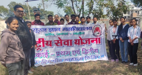 कोंच : सूरज ज्ञान महाविद्यालय में संचालित राष्ट्रीय सेवा योजना इकाई प्रथम एवं द्वितीय के तृतीय एक दिवसीय शिविर में स्वयंसेवको ने महाविद्यालय परिसर में स्वच्छता अभियान चलाकर श्रमदान किया।