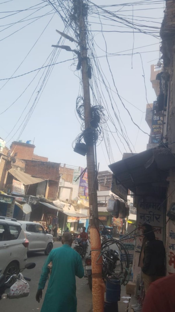 शाहगंज : नगर के लोहा मंडी स्थित नजीर मेडिकल स्टोर के सामने लगा बिजली का पोल अब लोगों की जान के लिए खतरा बन गया है। यह पोल नाली के बीच में लगाया गया है, जहां हमेशा पानी भरा रहता है। लगातार जंग लगने और गंदे पानी के संपर्क में रहने से पोल का निचला हिस्सा पूरी तरह गल चुका है, जिसके कारण वह खतरनाक रूप से झुक गया है और कभी भी गिर सकता है। स्थानीय लोगों के अनुसार, पोल में बराबर करंट उतरता रहता है, जिससे आसपास से गुजरने वाले लोगों को झटका लगने का डर बना रहता है। कई बार बच्चों और राहगीरों को हल्का करंट महसूस भी हुआ है। इसके बावजूद विद्युत विभाग की ओर से अब तक कोई कार्रवाई नहीं की गई है।