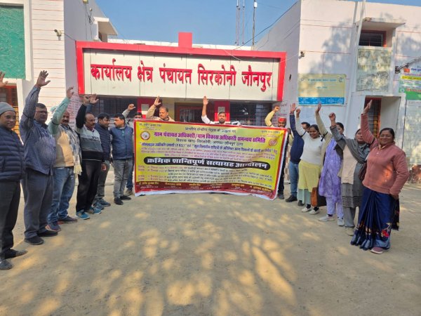 जौनपुर : केंद्रीय नेतृत्व के आह्वान पर पूर्व घोषित कार्यक्रम के अनुसार दूसरे दिन भी पंचायती राज एवं ग्राम्य विकास विभाग के जनपद के समस्त ग्राम पंचायत सचिवों ने समस्त विकास खंडों में ऑनलाइन उपस्थिति प्रणाली एवं मूल विभागीय कार्यों के अतिरिक्त अन्य विभागों के कार्यों का विरोध करने हेतु समग्र रूप से आयोजित प्रदेश व्यापी क्रमिक सांकेतिक शांतिपूर्ण सत्याग्रह आंदोलन में शासकीय कार्यों का निर्वहन काली पट्टी बांधकर किया। उo प्रo ग्राम पंचायत अधिकारी संघ के प्रदेश अध्यक्ष डॉ प्रदीप सिंह तथा ग्राम विकास अधिकारी एसोसिएशन जौनपुर के जिला अध्यक्ष डॉ फूलचंद कनौजिया ने संयुक्त रूप से जारी प्रेस विज्ञप्ति में उपर्युक्त कार्यक्रम के संदर्भ में अवगत कराया कि शासन प्रशासन द्वारा ग्राम पंचायत सचिवों को बिना कोई अतिरिक्त संसाधन उपलब्ध कराये उनके व्यक्तिगत मोबाइल एवं सिम से फेशियल रिकॉग्निशन बेस्ड अटेंडेंस सिस्टम के द्वारा क्षेत्रीय सचिवों की उपस्थिति हेतु अव्यवहारिक पत्र जारी किया गया है जिससे पूरे प्रदेश के सचिव अत्यधिक दबाव में है तथा ऑनलाइन उपस्थित प्रणाली उनके क्षेत्रीय कार्य की प्रकृति के बिल्कुल विपरीत है। संयुक्त रूप से दोनों कर्मचारी नेताओं ने कहा कि वर्तमान में पूरे प्रदेश में क्षेत्रीय ग्राम सचिव अपना मूल कार्य नियमित ढंग से नहीं कर पा रहे हैं क्योंकि उनके ऊपर गैर विभागीय कार्य जैसे फार्मर रजिस्ट्री, एग्रो स्टैक सर्वे, गौशाला प्रबंधन, आयुष्मान हेल्थ कार्ड, फैमिली आईडी, विभिन्न प्रकार के पेंशनों का सत्यापन, शिक्षा विभाग के ऑपरेशन कायाकल्प एवं बोर्ड परीक्षा में ड्यूटी, गायों के लिए भूसा का प्रबंधन, पी.एम. सूर्य घर, पराली प्रबंधन, सीएम डैशबोर्ड समीक्षा आदि को लेकर लक्ष्य निर्धारित करते हुए अधिकारी बिना कोई अतिरिक्त संसाधन उपलब्ध कराये अत्यधिक दबाव बना कर कार्य करा रहे हैं जिससे सचिव अस्वस्थ होने के साथ विभिन्न दुर्घटनाओं के भी शिकार हो रहे हैं।