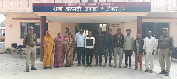 जौनपुर - जनपद में अपराध एवं वांछित अभियुक्तों की गिरफ्तारी तथा शांति व्यवस्था बनाए रखने के उद्देश्य से चलाए जा रहे अभियान के तहत थाना बरसठी पुलिस ने अलग-अलग स्थानों पर कार्रवाई करते हुए कुल 13 लोगों को हिरासत में लेकर चालान किया। यह अभियान पुलिस अधीक्षक जौनपुर के निर्देश पर संचालित किया जा रहा है। अपर पुलिस अधीक्षक (ग्रामीण) एवं क्षेत्राधिकारी मड़ियाहूं के पर्यवेक्षण में प्रभारी निरीक्षक जयप्रकाश यादव के नेतृत्व में पुलिस टीम ने क्षेत्र में विवाद की सूचना पर त्वरित कार्रवाई की। पल्टूपुर में मकान निर्माण को लेकर विवाद ग्राम पल्टूपुर में मकान निर्माण को लेकर दो पक्षों के बीच विवाद की सूचना पर उपनिरीक्षक सुरेन्द्र सिंह मय हमराह मौके पर पहुंचे। वहां सुरेन्द्र शर्मा उर्फ पप्पू (40 वर्ष), चन्द्रशेखर तिवारी (55 वर्ष), मनोज उर्फ करिया (46 वर्ष) एवं किशन चौहान (22 वर्ष) आपस में विवाद करते पाए गए। स्थिति अमादा फौजदारी होने पर शांति भंग की आशंका के दृष्टिगत चारों को बीएनएसएस की धारा 170/126/135 के तहत हिरासत में लिया गया। मनीपुर में जमीनी विवाद ग्राम मनीपुर में जमीनी विवाद को लेकर दो पक्षों के बीच कहासुनी हो रही थी। संजीत कुमार गौतम (27 वर्ष), सत्यम गौतम (20 वर्ष) व लालबहादुर गौतम (42 वर्ष) को भी शांति व्यवस्था बनाए रखने हेतु उक्त धाराओं में हिरासत में लिया गया। आईजीआरएस प्रार्थना पत्र की जांच के सिलसिले में थाना आए दोनों पक्षों—पवन कुमार गौतम (26 वर्ष), उर्मिला देवी (59 वर्ष), ममता देवी (25 वर्ष) व शीला देवी (58 वर्ष)—को समझा-बुझाकर भेजा गया, लेकिन थाना गेट पर पुनः विवाद शुरू हो गया। शांति भंग की आशंका को देखते हुए सभी को हिरासत में लिया गया। इसी दौरान थाना गेट पर नन्हे हासमी (40 वर्ष) व मदई हासमी (50 वर्ष) भी राहगीरों से कहासुनी करते पाए गए, जिन्हें भी एहतियातन पुलिस ने हिरासत में लिया।