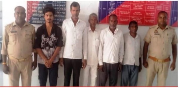 जौनपुर - कुवंर अनुपम सिंह वरिष्ठ पुलिस अधीक्षक जौनपुर द्वारा जनपद में अपराध की रोकथाम व अपराधियों की गिरफ्तारी हेतु चलाये जा रहे अभियान के क्रम मे बरसठी पुलिस टीम द्वारा आज दिनांक 17.03.2026 को ग्राम बेलौना खुर्द से 05 नफर अभियुक्तगण 1. अमर बहादुर गौतम पुत्र रामदुलार उम्र करीब 58 वर्ष, 2. दिनेश कुमार गौतम पुत्र मुन्नर उम्र करीब 52 वर्ष, 3. राजकुमार गौतम पुत्र स्व० हंशराज उम्र करीब 55 वर्ष, 4. शिवप्रसाद गौतम पुत्र स्व० श्रीनाथ उम्र करीब 35 वर्ष, 5. अखिलेश कुमार पुत्र मुकेश कुमार उम्र करीब 19 वर्ष, समस्त निवासीगण ग्राम बेलौना खुर्द थाना बरसठी, जनपद जौनपुर को दुसरे की जमीन से मूर्ति रखने के विवाद को लेकर लेकर शान्ति भंग होने की प्रबल सम्भावना के दृष्टिगत गिरफ्तार कर चालान अन्तर्गत धारा 170/126/135 बीएनएसएस में सम्बन्धित न्यायालय भेजा जा रहा है। अमर बहादुर गौतम पुत्र रामदुलार उम्र करीब 58 वर्ष,दिनेश कुमार गौतम पुत्र मुन्नर उम्र करीब 52 वर्ष,राजकुमार गौतम पुत्र स्व० हंशराज उम्र करीब 55 वर्ष, शिवप्रसाद गौतम पुत्र स्व० श्रीनाथ उम्र करीब 35 वर्ष अखिलेश कुमार पुत्र मुकेश कुमार उम्र करीब 19 वर्ष समस्त निवासीगण ग्राम बेलौना खुर्द थाना बरसठी, गिरफ्तार करने वाली टीम उपनि0 शैलेन्द्र कुमार बूबे थाना बरसठी जौनपुर,हे0का0 विजयशंकर सरोज थाना बरसठी जौनपुर
