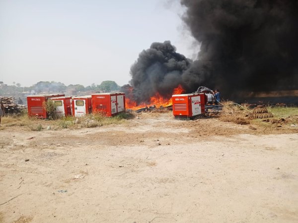 इस हादसे में रखी पाइप लाइन के आसपास रखा प्लास्टिक और अन्य ज्वलनशील सामान पूरी तरह जलकर राख हो गया, जिससे भारी आर्थिक नुकसान हुआ है। हालांकि, राहत की बात यह रही कि इस घटना में किसी के हताहत होने की सूचना नहीं है।