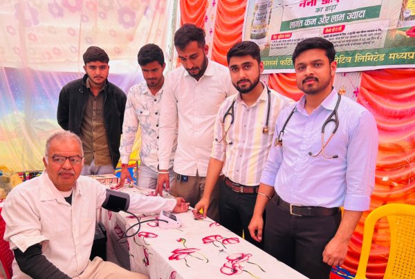 झकनावदा : नगर में शनिवार को आमजन के स्वास्थ्य को ध्यान में रखते हुए इंडियन फ़ार्मर्स फर्टिलाइजर्स कोंऑपरेटिव लिमिटेड कंपनी के तत्वावधान में निःशुल्क मेडिकल कैंप आयोजित किया गया। आयोजन में सर्वप्रथम उपस्थित अतिथि वरिष्ठ भाजपा नेता भूपेन्द्र सिंह सेमलिया,जनपद उपाध्यक्ष देवकुंवर पड़ियार,परीक्षित सिंह राठौर,हेमेन्द्र जोशी,हरिराम पड़ियार,डॉ.प्रणिता जायसवाल,डॉ.निसर्ग निर्भय,डॉ.आयुष बाठिया आदि ने महांकाल राजा के चित्र पर माल्यार्पण कर धूपद्वीप प्रज्ज्वलित कर आयोजन का शुभारंभ किया। बाद सभी अतिथियों का आयोजको ने पुष्प माला पहनाकर स्वागत किया। शिविर में धार जिले के राजगढ़ स्थित कंचन हास्पिटल के संचालक डॉ.एम एल जैन (एमडी) के मार्गदर्शन में स्त्री रोग चिकित्सक डॉ.प्रणिता जायसवाल,एमबीबीएस डॉ.आयुष बाठिया,एमबीबीएस डॉ.निसर्ग निर्भय जैसे योग्य डॉक्टरों द्वारा मरीजों का परीक्षण कर उन्हें आवश्यक परामर्श दिया गया । शिविर के दौरान सामान्य रोग, बुखार, सर्दी-खांसी, ब्लड प्रेशर, शुगर, जोड़ों के दर्द सहित अन्य सामान्य स्वास्थ्य समस्याओं की जांच की गई । साथ ही मरीजों को स्वास्थ्य संबंधी जरूरी सलाह भी दी गई । एवं निःशुल्क दवाइयाँ वितरित की गई।