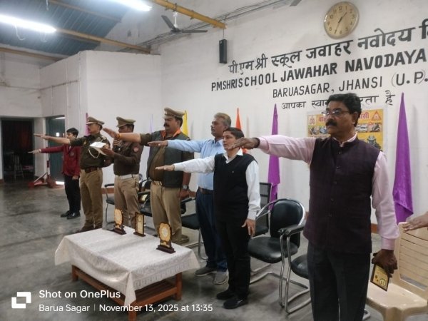 झांसी - वरिष्ठ पुलिस अधीक्षक झांसी बीबीजीटीएस मूर्ति के दिशा निर्देशन में लगातार यातायात नियमों के प्रति लोगों को जागरूक किया जा रहा है इसी क्रम में यातायात 2025 के अंतर्गत आज बरुआसागर झांसी स्थित जवाहर नवोदय विद्यालय में टी एस आई शशिकांत यादव के मुख्य आतिथ्य में यातायात की पाठशाला लगाई गई। कार्यक्रम की अध्यक्षता विद्यालय के प्राचार्य वीरेंद्र कुशवाहा ने की विशिष्ट अतिथि के रूप में,एस एच ओ बरुआसागर राहुल राठौर,एस आई सुरेंद्र सिंह,प्रभाकर कैथवास,योगेंद्र कुमार शर्मा उपस्थित रहे, कार्यक्रम का संयोजन ट्रैफिक चीफ वार्डन प्रगति शर्मा द्वारा किया गया यातायात की पाठशाला में मुख्य अतिथि द्वारा बच्चों को यातायात के नियमों की बारीकी से जानकारी दी गई सड़कों पर लगे हुए यातायात संकेतों के विषय में भी समझाया और कहा कि आप सभी बच्चे अपने परिवार,पड़ोस ,मित्र मंडली में जाकर यातायात के नियमों के बारे में बताएं व नियम पालन करवाने के लिए प्रेरित भी करें, विद्यालय के बच्चों द्वारा यातायात से संबंधित सवालों के जवाब अतिथियों द्वारा दिए गए ।कार्यक्रम में मिशन शक्ति अभियान फेज 5.0 के अंतर्गत ट्रैफिक वार्डन दीपशिखा शर्मा द्वारा छात्राओं को आत्मरक्षा के गुर सिखाए गए, एवं प्रगति शर्मा द्वारा विभिन्न महिला हेल्पलाइन नंबरों की विस्तार से जानकारी दी गई, पाठशाला में टी एस आई द्वारा इंटरसेप्टर बाइक की जानकारी छात्र-छात्राओं को दी। कार्यक्रम के अंत में कार्यक्रम संयोजिका प्रगति शर्मा द्वारा आए हुए अतिथियों को स्मृति चिन्ह भेंट कर उनका स्वागत अभिनंदन किया गया। कार्यक्रम में ट्रैफिक चीफ वार्डन प्रगति शर्मा द्वारा विद्यालय के टॉपर्स विद्यार्थी जय शिखा पटेल,वीर प्रताप सिंह, सानिया,सोनम देवी, शिवानी यादव, एवं देवांश गुप्ता को मंचासीन अतिथियों द्वारा मेडल पहनवाकर सम्मानित करवाया। उक्त अवसर पर ट्रैफिक वार्डन दीपशिखा शर्मा,विद्यालय से प्रवक्ता ललिता,रवि,कृष्ण मोहन,आशुतोष,नदीम,शोभित, अजय,सुषमा,आरती,शशि,उपस्थित रहे कार्यक्रम का संचालन प्रवक्ता सुधीर गुप्ता ने एवं आभार विद्यालय के प्राचार्य वीरेंद्र सिंह कुशवाहा में व्यक्त किया।