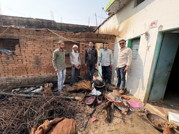बंगरा सेकरा धवा ग्राम में आग से गरीब परिवार का नुकसान, ग्राम प्रधान ने कराया निरीक्षण