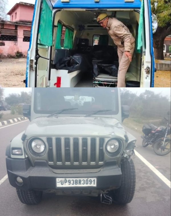 थार कार की टक्कर से बाइक सवार दो वृद्धों की हुई मौत, मौके पर पहुंची पुलिस