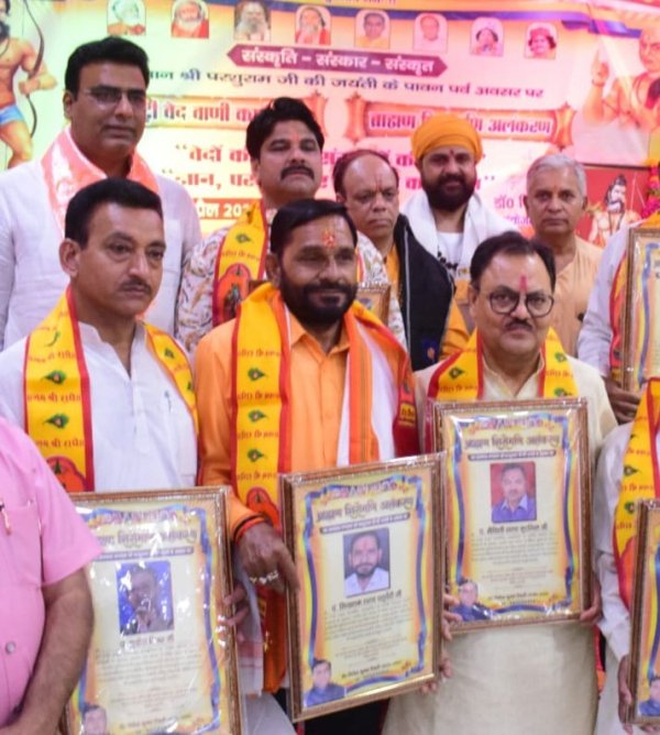 झांसी - परंपरागत रूप से मनाई जाने वाली परशुराम जयंती को इस बार ब्राह्मण समाज,झांसी ने एक नए और प्रेरणादायक स्वरूप में प्रस्तुत किया, जहां केवल पूजा-अर्चना तक सीमित न रहकर नई पीढ़ी को मंच पर लाकर संस्कृति, संस्कार और संस्कृत का सजीव संगम प्रस्तुत किया गया। भगवान परशुराम जी के चित्र पर माल्यार्पण एवं पूजन-अर्चन के साथ आयोजित “बाल वेद वाणी एवं संस्कृत गौरव एवं ब्राह्मण शिरोमणि अलंकरण कार्यक्रम” अत्यंत गरिमामय वातावरण में सम्पन्न हुआ। इस अभिनव आयोजन में बालक-बालिकाओं ने जिस आत्मविश्वास, शुद्ध उच्चारण और भावपूर्ण अभिव्यक्ति के साथ वेद मंत्र, श्लोक, स्तोत्र एवं संस्कृत वाचन प्रस्तुत किया, उसने उपस्थित जनसमूह को मंत्रमुग्ध कर दिया। बच्चों की स्वर लहरियों में न केवल वेदों की गूंज थी, बल्कि उसमें भारतीय संस्कृति और संस्कारों की जीवंत झलक भी दिखाई दी। कई प्रस्तुतियां इतनी प्रभावशाली रहीं कि पूरा सभागार तालियों की गूंज से भर उठा। यह स्पष्ट रूप से महसूस किया गया कि यदि उचित मंच और मार्गदर्शन मिले, तो नई पीढ़ी भारतीय ज्ञान परंपरा को आत्मसात करने में पूरी तरह सक्षम है।