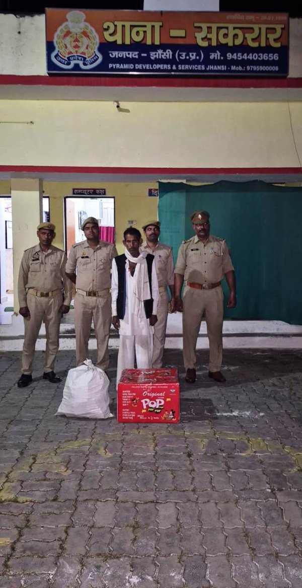 सकरार झांसी: उत्तर प्रदेश में दीपावली से पहले अवैध पटाखों और विस्फोटकों के खिलाफ पुलिस की कार्रवाई जारी है। ताजा मामले में झांसी जिले के सकरार थाना प्रभारी पप्पू सिंह के नेतृत्व में हाइवे से अवैध पटाखे बरामद कर एक व्यक्ति को गिरफ्तार किया है।
