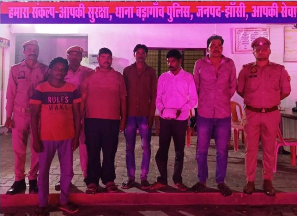 झांसी: अपर पुलिस महानिदेशक कानपुर आलोक सिंह व पुलिस महानिरीक्षक, झाँसी आकाश कुलहरि के मार्गदर्शन व वरिष्ठ पुलिस अधीक्षक झाँसी बीबीजीटीएस मूर्ति के कुशल निर्देशन में जनपद झाँसी में अपराधों की रोकथाम एवं जुआ-सट्टा के विरुद्ध झाँसी पुलिस द्वारा लगातार की जा रही प्रभावी कार्यवाही के क्रम में आज दिनाँक 19.10.2025 को थाना बड़गांव पुलिस द्वारा खाती बाबा मन्दिर के पास झाड़ियों में जुआ खेल रहे 5 आरोपी प्रदीप उर्फ गुड्डा पुत्र करन सिंह वर्ष निवासी ग्राम उडैना थाना बडागांव जनपद झाँसी,बब्लू पुत्र मुकुन्दी निवासी ग्राम छपरा थाना बडागांव जनपद झाँसी,राजेन्द्र पुत्र हरगोविन्द निवासी ग्राम गढ़मऊ थाना बडागांव जनपद झाँसी,जितेन्द्र पुत्र रणधीर निवासी ग्राम गढमऊ थाना बाडगांव जनपद झाँसी,प्रमोद पुत्र रविदास निवासी ग्राम गढमऊ थाना बडागांव जनपद झाँसी को मालफड़ जामातलाशी के 7540/- रुपये तथा ताश पत्तों के साथ गिरफ्तार किया गया।