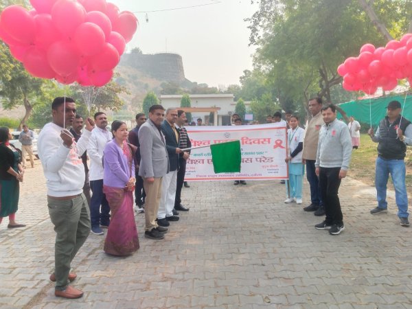 झांसी: उत्तर प्रदेश राज्य एड्स नियन्त्रण सोसायटी लखनऊ के निर्देसानुसार के अवसर पर "विश्व एड्स परेड" का आयोजन आज गांधी भवन से मुख्य चिकित्सा अधिकारी, झाँसी एवं जिला क्षय रोग अधिकारी, झाँसी के द्वारा हरी झण्डी दिखाकर परेड का आरम्भ किया गया।
