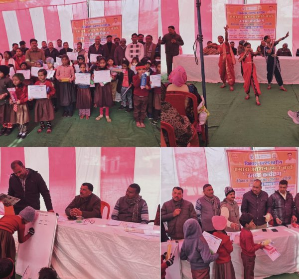 बेसिक शिक्षा परिषद, बाल विकास परियोजना एवं राजस्व विभाग के संयुक्त तत्वावधान में विकास खण्ड स्तरीय “हमारा आंगन–हमारे बच्चे” कार्यक्रम का आयोजन पूर्व माध्यमिक विद्यालय घुराट के प्रांगण में किया गया। कार्यक्रम की अध्यक्षता खण्ड शिक्षा अधिकारी बंगरा दीपक श्रीवास्तव ने की। कार्यक्रम का शुभारंभ मां सरस्वती के चित्र पर पुष्प अर्पित कर एवं दीप प्रज्ज्वलन के साथ हुआ। मंचासीन अतिथियों का स्वागत करते हुए खण्ड शिक्षा अधिकारी दीपक श्रीवास्तव ने कहा कि यह कार्यक्रम भले ही एक दिवसीय हो, लेकिन इसका संदेश व्यापक और दूरगामी है। प्राथमिक एवं पूर्व प्राथमिक शिक्षा को मजबूत करना ही इसका मुख्य उद्देश्य है। इस अवसर पर प्राथमिक व उच्च प्राथमिक विद्यालय घुराट की छात्राओं ने भावनात्मक प्रस्तुतियों से उपस्थितजनों का स्वागत किया।