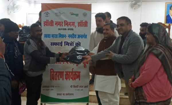 नगर निगम, झॉसी कार्यालय में वार्ड नं0 44 और 55 के समस्त सफाई मित्रों को शीतकालीन वर्दी का वितरण