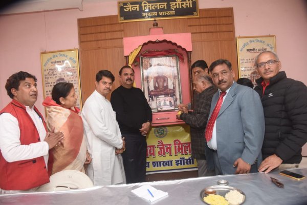 झांसी । दिगम्बर जैन महासमिति झांसी संभाग( पुरुष ,महिला) की संयुक्त मीटिंग अपराहन 12:00 से अतिशय क्षेत्र करगुवा जी पूर्व केंद्रीय ग्रामीण विकास राज्य मंत्री भारत सरकार प्रदीप जैन आदित्य एवं सदर विधायक "रवि शर्मा" के मुख्य अतिथि एवं विपिन जैन राष्ट्रीय कार्य अध्यक्ष दिगंबर जैन महा समिति की अध्यक्षता में आहूत की गई जिसमें सर्वप्रथम निशुल्क स्वास्थ्य शिविर का फीता काटकर रवि शर्मा प्रदीप जैन आदित्य विपिन एवं कमल जैन महामंत्री दिगंबर जैन पंचायत समिति झांसी शिरोमणि जैन एडवोकेट संभागीय अध्यक्ष दिगंबर जैन महा समिति ने अपना स्वास्थ्य परीक्षण कराया स्वास्थ्य शिविर का आयोजन मेडिकल व्यापार मंडल के सहयोग से परख पैथोलॉजी के संचालन डॉक्टर बी के गुप्ता एवं भारद्वाज डेंटल क्लीनिक के संचालन डॉक्टर विजय भारद्वाज द्वारा परीक्षण किया गया 95 लोगों का सफल परीक्षण हुआ तत्पश्चात मीटिंग में वक्ताओं ने अपने विचार व्यक्त किया करगुवा जी निर्माण मंत्री भागचंद जैन करुणास्थली एवं चंद्रोदय तीर्थ मंत्री राजकुमार जैन बाबा विधि सलाहकार का अशोक जैन महासमिति के महामंत्री पवन जैन एडवोकेट पूर्व कोष्धकारी सुधीर जैन रवि जैन बिजौली आदिनाथ भक्तांबर मंडल के अध्यक्ष राजेंद्र जैन संजय जैन छतरपुर महासमिति के उपाध्यक्ष कुलदीप जैन संतोष जैन जल निगम गुरु सेवा संघ के महामंत्री रवि जैन कंधारी नवीन जैन ऋषि जैन आशीष जैन नगरा अशोक जैन दिनेश जैन बक्सा विकास जैन अजय जैन मेडिकल व्यापार मंडल के पदाधिकारी गण राजू गुप्ता मारुति पंकज मिश्रा नोट अनिल खरे लाल गुप्ता अवधेश निरंजन शिव कुमार कुचिया बादाम सिंह यादव महासमिति की राष्ट्रीय चेयरपर्सन शशि जैन संभागीय अध्यक्ष श्रीमती रीता जैन आदित्य संभागीय महामंत्री श्रीमती प्रीति जैन संभागीय कोषाध्यक्ष दीपा जैन संभागीय युवा मंत्री श्रीमती मनीषा जैन संध्या वर्धमान श्वेता जैन रेखा जैन अनीता जैन रचना जैन लोकपथ मेघा जैन प्रीति मगरपुर कामना जैन आदि लोगों ने स्वास्थ्य परीक्षण कराया संचालन अतिशय क्षेत्र करगुआ जी मंत्री शिरोमणि जैन एडवोकेट ने किया श्रीमती रीता जैन ने सभी का आभार व्यक्त किया।