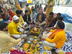 अंत में आरती करके सभी को प्रसाद वितरित किया गया।