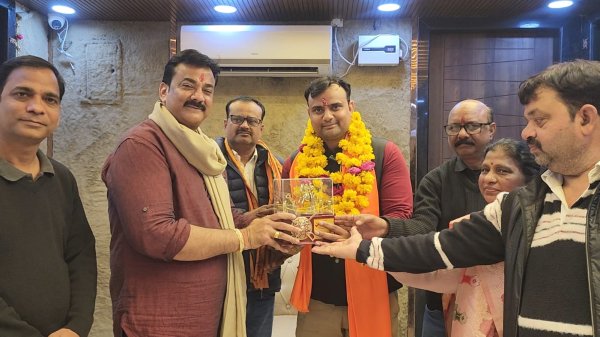 झाँसी। सामाजिक सरोकारों के लिए निरंतर संघर्षरत संघर्ष सेवा समिति कार्यालय पर शनिवार को आत्मीयता, सम्मान और संगठनात्मक एकजुटता से ओतप्रोत वातावरण देखने को मिला। इस अवसर पर संघर्ष सेवा समिति के अध्यक्ष डॉ. संदीप सरावगी ने कायस्थ महासभा के नवनियुक्त जिलाध्यक्ष रमन श्रीवास्तव का गरिमामय स्वागत व सम्मान किया।