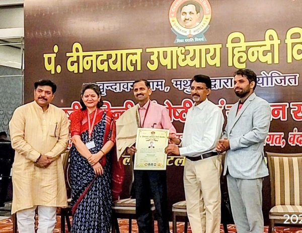 रविवार को पं. दीनदयाल उपाध्याय हिन्दी विद्यापीठ द्वारा "राष्ट्रीय हिन्दी संगोष्ठी एवं सम्मान समारोह" का भव्य आयोजन पश्चिम बिहार, नई दिल्ली में किया गया। प्रो. सुधीर कुमार आर्या जवाहर लाल नेहरू विश्वविद्यालय नई दिल्ली के मुख्य आतिथ्य,डॉ. रेखा चौहान शिक्षा निदेशालय, नई दिल्ली मुख्य वक्ता, डॉ अमन सिंह चौहान प्राचार्य दिल्ली शिक्षा निदेशालय, डॉ सुमित शर्मा एससीईआरटी नई दिल्ली के विशिष्ट आतिथ्य में विभिन्न राज्यों के शिक्षाविदों के साथ ही शिक्षा, योग्यता एवं अनुभव को देखते हुए शिक्षण कार्य, समाजसेवा एवं पत्रकारिता के क्षेत्र में विशेष उपलब्धि हासिल करने पर महानगर के वरिष्ठ अधिवक्ता, पत्रकार व शिक्षाविद राजेश कुमार चौरसिया को"विद्या वाचस्पति सारस्वत सम्मान"(डाक्ट्रेट की उपाधि) से सम्मानित किया गया है। उल्लेखनीय है कि पं० दीनदयाल उपाध्याय हिन्दी विद्यापीठ भगवान कृष्ण एवं भारतीय जनसंघ के संस्थापक अध्यक्ष पं० दीनदयाल उपाध्याय की जन्म स्थली मधुरा में हिन्दी भाषा एवं साहित्य के प्रचार-प्रसार को समर्पित उ०प्र० सरकार द्वारा पंजीकृत, आईएसओ 9001:2015 प्रमाणित, नीति आयोग, भारत सरकार द्वारा मान्यता प्राप्त एवं सूक्ष्म, लघु और मध्यम उद्योग मंत्रालय, भारत सरकार में पंजीकृत एक वैधानिक संस्था है।