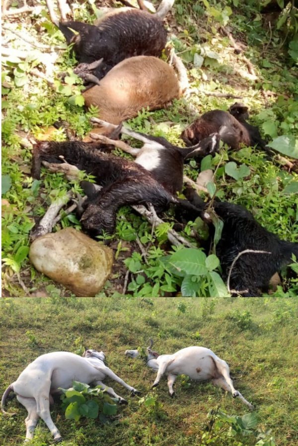 आकाशीय बिजली (वज्रपात) की चपेट में दो बैल समेत सात बकरियों की मौत