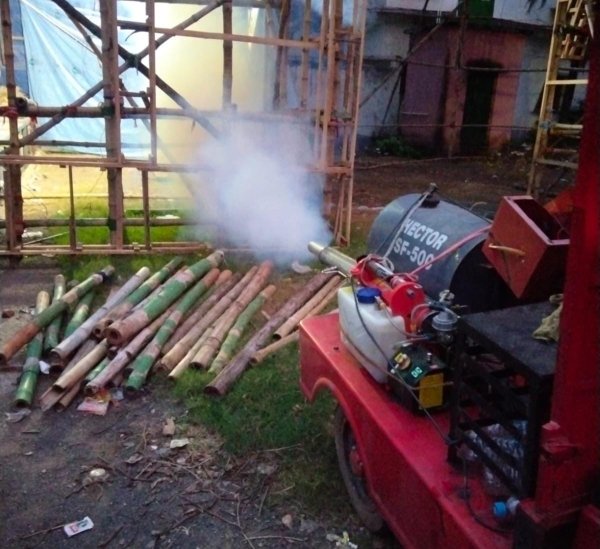 पूजा पंडालों के पास नगर परिषद द्वारा कराया गया फॉगिंग