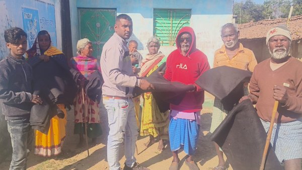 पूर्व राज्यसभा सांसद धीरज प्रसाद साहू द्वारा उपलब्ध कराई गई कंबल का कांग्रेसी नेता नसीम अंसारी ने जरूरतमंदों के बीच किया वितरण