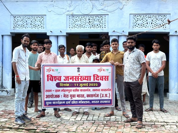 कासगंज : युवा कार्यक्रम एवं खेल मंत्रालय भारत सरकार द्वारा संचालित मेरा युवा भारत कासगंज के जिला युवा अधिकारी पुनीत गोयल के निर्देशन में विकास खंड के ग्राम मोहनपुरा में मेरा युवा भारत NYK के अध्यक्ष श्रीकांत शर्मा ने बैठक आयोजित की। और महिला व पुरुषों को बताया कि विश्व जनसंख्या दिवस को जनसंख्या वृद्धि से जुड़ी चुनौतियों और अवसरों के बारे में जागरूकता बढ़ाने के लिए मनाया जाता है । मेरा युवा भारत मोहनपुरा के संरक्षक जय वशिष्ठ ने बताया कि यह आयोजन सन् 1989 में संयुक्त राष्ट्र काउंसलिंग द्वारा स्थापित किया गया था इस दिवस का उद्देश्य विभिन्न जनसंख्या मुद्दों पर महिला व पुरुषों को जागरूक करना है साथ ही परिवार नियोजन लिंक समानता गरीबी मातृ स्वास्थ्य और मानव अधिकारों का महत्व बताना है यूथ क्लब के वरिष्ठ सदस्य राजकिशोर शर्मा ने बताया कि जनसंख्या दिवस पर होने वाले कार्यक्रम में महिला एवं पुरुषों को उनके लिए समाज में मिलने वाले अधिकारों स्वास्थ आदि से जागरूक करना है।