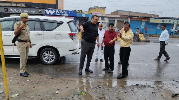 कासगंज के जिलाधिकारी ने वर्षा के कारण नगर के विभिन्न क्षेत्रों में हुए जलभराव का स्थलीय निरीक्षण किया