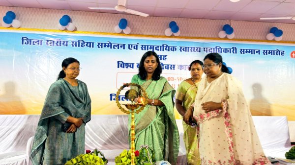 “जिला स्तरीय सहिया सम्मेलन एवं सामुदायिक स्वास्थ्य पदाधिकारी सम्मान समारोह-सह-विश्व यक्ष्मा दिवस कार्यक्रम 2026” का आयोजन जिला स्वास्थ्य समिति, खूँटी द्वारा नगर भवन, खूँटी में किया गया। कार्यक्रम का शुभारंभ मुख्य अतिथि उपायुक्त आर० रॉनिटा द्वारा दीप प्रज्वलित कर किया गया।
