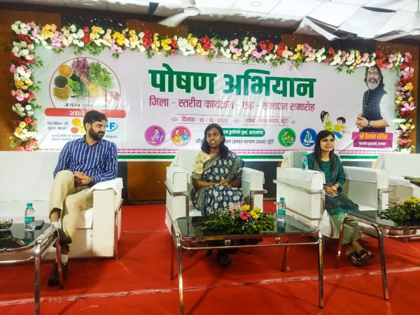 खूंटी : समाज कल्याण शाखा, खूंटी द्वारा राष्ट्रीय पोषण माह 2025 के अवसर पर नगर भवन, खूंटी में जिला स्तरीय समापन समारोह का आयोजन किया गया। समारोह का शुभारंभ मुख्य अतिथि उपायुक्त श्रीमती आर. राॅनिटा, उप विकास आयुक्त श्री आलोक कुमार, अनुमंडल पदाधिकारी, प्रभारी जिला समाज कल्याण पदाधिकारी सहित अन्य अधिकारियों द्वारा संयुक्त रूप से दीप प्रज्वलित कर किया गया। इस अवसर पर उपायुक्त श्रीमती आर. राॅनिटा ने कहा कि पोषण माह के दौरान आंगनबाड़ी केंद्रों की सेविकाओं एवं सहायिकाओं द्वारा महिलाओं, किशोरियों और बच्चों के बीच पोषण संबंधी जानकारी का प्रसार कर सराहनीय कार्य किया गया है। उन्होंने कहा कि “सुपोषित झारखंड, साक्षर झारखंड, समृद्ध झारखंड” की परिकल्पना को साकार करने में आंगनबाड़ी कर्मियों की भूमिका अत्यंत महत्वपूर्ण है। उपायुक्त ने कहा कि बच्चे देश का भविष्य हैं, अतः अभिभावकों को उनके सही पोषण और शिक्षा पर विशेष ध्यान देना चाहिए। उन्होंने आंगनबाड़ी कर्मियों से आग्रह किया कि पोषण जागरूकता को एक सतत अभियान के रूप में लेकर महिलाओं के साथ-साथ पुरुषों को भी बच्चों और माताओं के पोषण के प्रति जागरूक किया जाए। उन्होंने कहा कि हमें अपने खान-पान में कम नमक, कम चीनी और कम तेल का उपयोग कर स्वास्थ्य के प्रति सजग रहने की आवश्यकता है। उपायुक्त ने माताओं से कहा कि मां का दूध बच्चों के लिए अमृत तुल्य होता है, अतः शिशु के प्रारंभिक छह माह तक केवल स्तनपान कराया जाना चाहिए। उन्होंने कहा कि हरी सब्जियां, फल और स्थानीय पौष्टिक खाद्य पदार्थों को आहार में शामिल करने से हम अनेक बीमारियों से बच सकते हैं। कार्यक्रम में उप विकास आयुक्त श्री आलोक कुमार ने पोषण माह की थीम “हमारा संकल्प – कुपोषण मुक्त झारखंड” पर विस्तार से प्रकाश डाला। उन्होंने बताया कि किसी भी बच्चे के लिए जन्म से पूर्व 9 माह और जन्म के बाद 2 वर्ष यानी कुल 1000 दिन अत्यंत महत्वपूर्ण होते हैं। इस अवधि में माताओं को नियमित स्वास्थ्य जांच कराना और पोषण पर विशेष ध्यान देना चाहिए। उन्होंने कहा कि बच्चे के जन्म के पहले छह माह तक मां का दूध सर्वोत्तम आहार है और तीन वर्ष की आयु तक आंगनबाड़ी केंद्रों के माध्यम से उन्हें पौष्टिक आहार और प्रारंभिक शिक्षा मिलनी चाहिए। उन्होंने स्वच्छता पर बल देते हुए कहा कि हमें अपने दैनिक जीवन में स्वच्छता की आदत डालनी चाहिए और बच्चों को भी प्रारंभ से ही स्वास्थ्य एवं स्वच्छता के प्रति जागरूक बनाना चाहिए। समारोह के दौरान गोद भराई और अन्नप्राशन की रस्में संपन्न कराई गईं। साथ ही उत्कृष्ट कार्य करने वाली सेविकाओं एवं सहायिकाओं को सम्मानित कर प्रोत्साहित किया गया। मौके पर पौष्टिक आहार से संबंधित प्रदर्शनी स्टॉल भी लगाए 