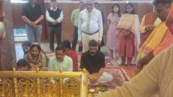 खूंटी : प्रसिद्ध धार्मिक स्थल बाबा आम्रेश्वर धाम में आज झारखंड उच्च न्यायालय के जोनल जज संजय कुमार द्विवेदी अपने पूरे परिवार के साथ दर्शन-पूजन के लिए पहुंचे। उनके साथ खूंटी व्यवहार न्यायालय के प्रधान जिला एवं सत्र न्यायाधीश सह डालसा अध्यक्ष रसिकेश कुमार, मुख्य न्यायिक दंडाधिकारी, खूंटी उपायुक्त आर रॉनिटा, पुलिस अधीक्षक मनीष टोप्पो, अनुमंडल पदाधिकारी दीपेश कुमारी, तोरपा अंचलाधिकारी सहित खूंटी, मुरहू एवं तोरपा थाना प्रभारी अपने दल-बल के साथ मौजूद थे। धाम पहुंचने पर मंदिर समिति के महामंत्री मनोज कुमार द्वारा अंगवस्त्र भेंट कर जोनल जज का स्वागत एवं अभिनंदन किया गया। इसके पश्चात मुख्य मंदिर के पुजारी हरिहर कर द्वारा वैदिक विधि-विधान से पूजा-अर्चना एवं आरती संपन्न कराई गई। इस अवसर पर उनके साथ आए सभी पदाधिकारी एवं परिजन भी पूजा में शामिल हुए। धार्मिक माहौल एवं प्रशासनिक गरिमा के बीच संपन्न यह कार्यक्रम श्रद्धा और आस्था का प्रतीक रहा मुख्य मंदिर में पूजा करने के उपरांत जोनल जज एवं उनके साथ आए अधिकारियों ने धाम परिसर स्थित अन्य मंदिरों के भी दर्शन किए। प्रस्थान के पूर्व मंदिर समिति की ओर से धाम का स्मृति-चिह्न भेंट कर उन्हें सम्मानित किया गया।