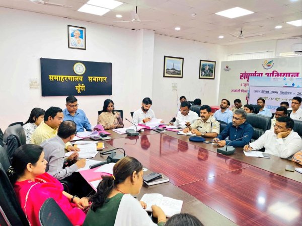खूंटी : झारखण्ड उत्पाद सिपाही प्रतियोगिता परीक्षा-2023 के सफल, निष्पक्ष एवं कदाचार मुक्त आयोजन को लेकर उपायुक्त रॉनिटा एवं पुलिस अधीक्षक मनीष टोप्पो द्वारा समाहरणालय खूँटी के सभागार में संयुक्त रूप से प्रतिनियुक्त मजिस्ट्रेट एवं पुलिस बल को ब्रीफिंग देते हुए आवश्यक दिशा-निर्देश दिए गए। इस दौरान जानकारी दी गई कि झारखंड कर्मचारी चयन आयोग (Jharkhand Staff Selection Commission) द्वारा दिनांक 12 अप्रैल 2026 को जिले में झारखण्ड उत्पाद सिपाही प्रतियोगिता परीक्षा-2023 का आयोजन किया जाएगा। इसके लिए खूँटी जिले में कुल 14 परीक्षा केंद्र निर्धारित किए गए हैं, जिसमें 4668 अभ्यर्थी सम्मिलित होंगी। परीक्षा का आयोजन तीन पालियों में संपन्न कराया जाएगा।